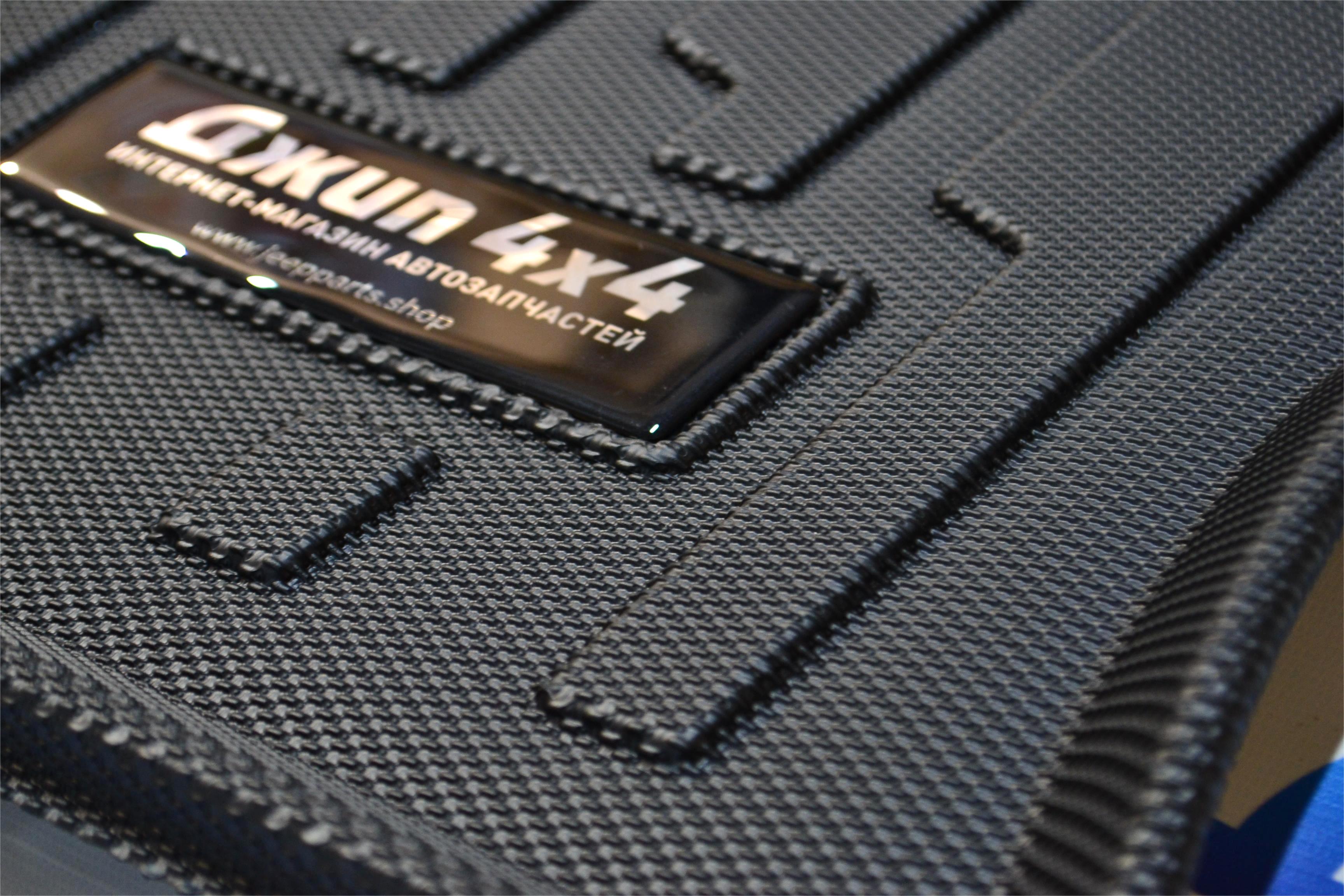 Ковёр изготавливается индивидуально под конфигурацию багажника Jeep Wrangler JL с учётом особенностей размещения встроенного сабвуфера. Он идеально повторяет контуры внутреннего пространства, аккуратно огибая динамики и оборудование, обеспечивая компактное размещение груза и свободное доступ к электронике.